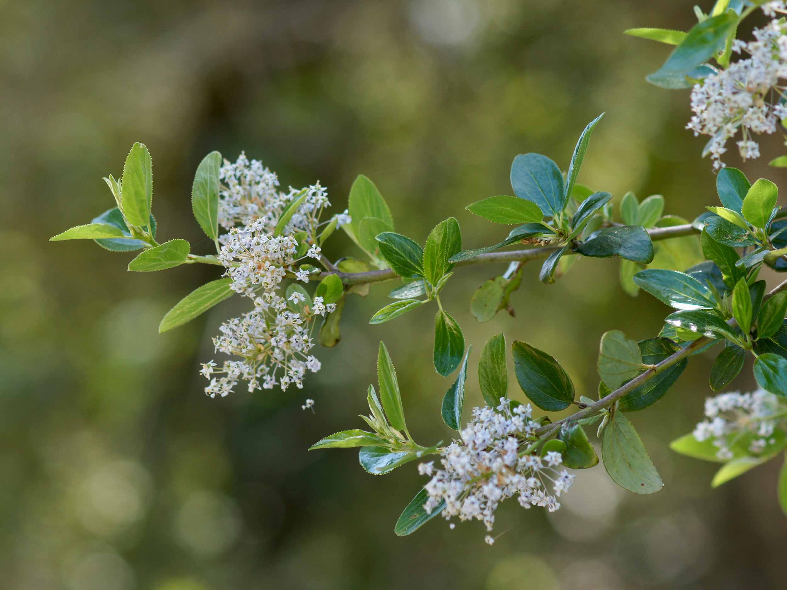 The genus is native through much of North and Central America but explodes in diversity in California, where dozens of species have evolved. Still, the distinction of the first species named goes to C. americanus, from eastern North America and known as New Jersey tea: a beverage made from its (caffeine-free) leaves and roots was prepared by indigenous groups and used as a tea substitute during the Revolutionary War. (Coffee-berry, Frangula californica, is in the same family; native tribes used its fruits to brew a coffee-like beverage, also caffeine-free.)