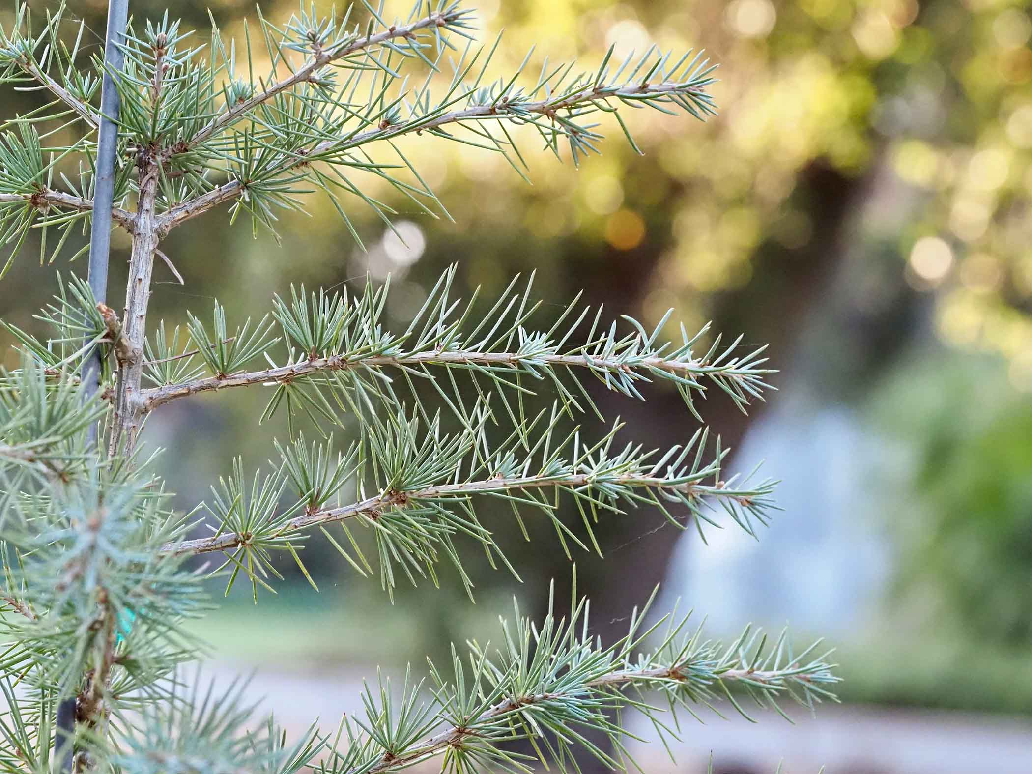 Two groups of three cedars on the west side of Meyer Green, and another trio west of Cedar Hall, were supplied as cedar of Lebanon but have proved instead to be the Atlas, with their short bluish needles in dense clusters and paler bark. A stately pair at 345 Forest Avenue in Palo Alto, planted in 1927 and reputed to be C. libani, may in fact be C. deodara. With cedars, seed provenance is everything. The specimens at the San Francisco Botanical Garden are not yet mature enough to reveal the species’ celebrated outline – dramatic, horizontally reaching limbs and flat-topped crown – a profile curiously absent from the cedar emblazoned on the Lebanese flag. Linnaeus, for his part, first placed the species among the pines as Pinus cedrus, somewhat validating those who like to think all conifers look the same.