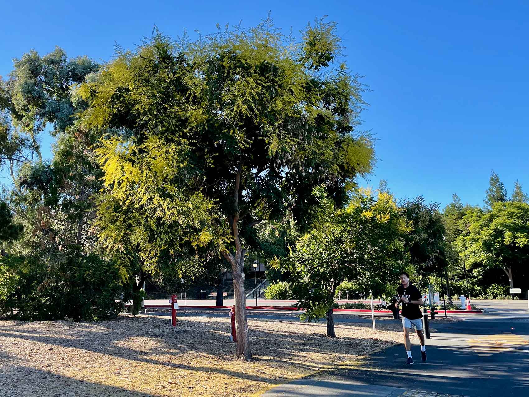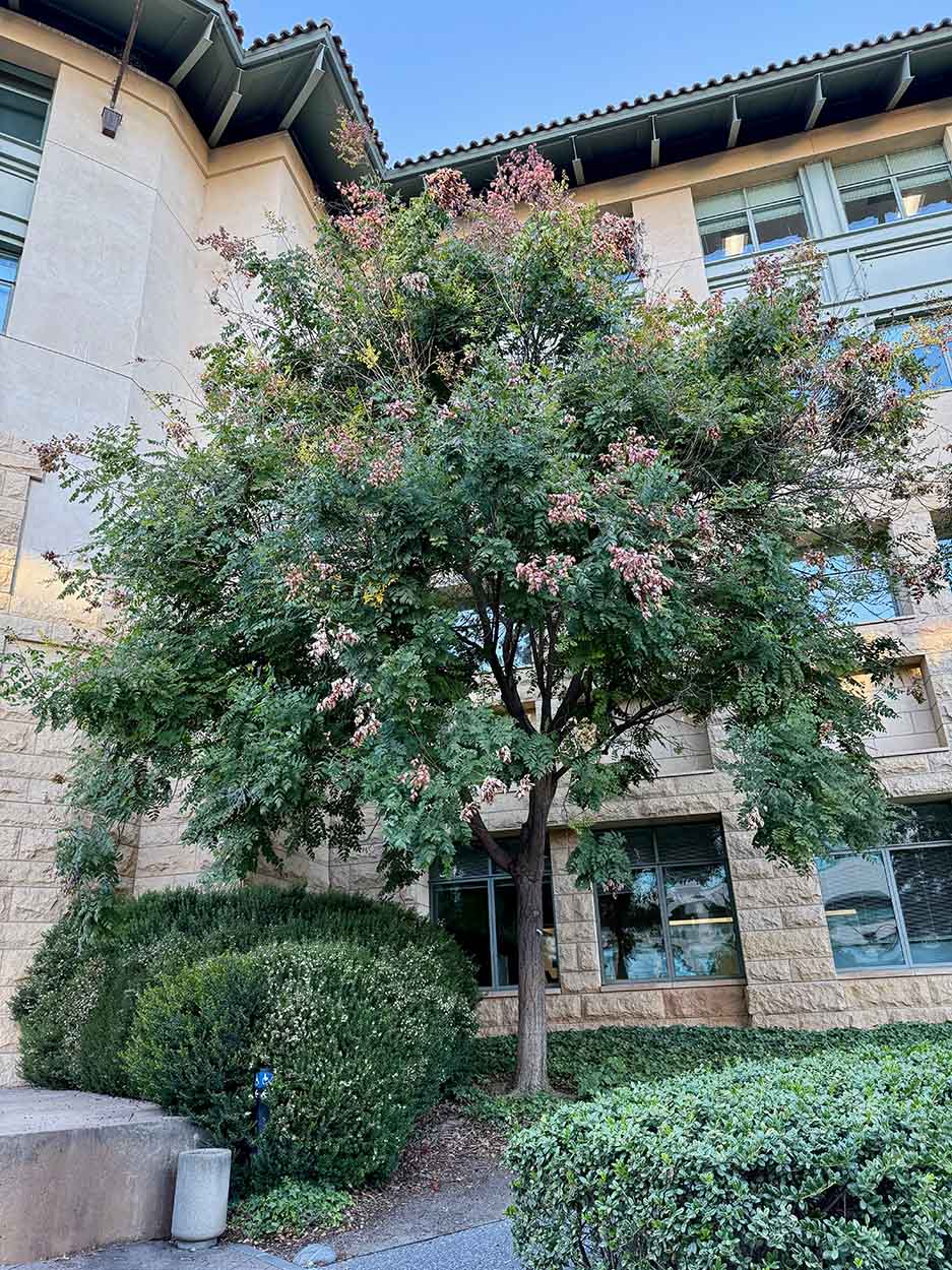 Our largest specimen grows at the right of the entrance of Gates Computer Science Building. A formerly fine planting along the east side of Schwab Residential Center is now reduced to three trees near Jane Stanford Way; across the street from them are two K. bipinnata. One K. paniculata remains of two that were interplanted among K. bipinnata near the lawn and sand volleyball court at Willis Court in Rains Houses.